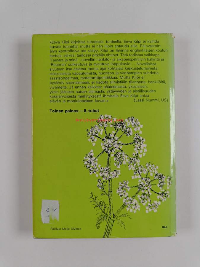 Hyvä. Tarkempi kuntoluokka: K3+ ; Selkämyksessä hieman vinoutta. Kansipaperin kunto: joitain repeämiä/kulumaa