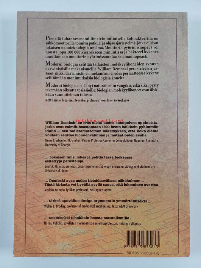 Muu(t) tekijä(t): Matti LeisolaAlkuteos: INTELLIGENT DESIGNAsiasanat: usko, maailmankuva, uskonto, luominen, uskonnonfilosofia, luonnontieteet, maailmankatsomus, kritiikki, luonnonvalinta, tiede, darwinismi, teologia, luonnonfilosofia, tieteidenvälisyys, informaatioteoriat, tieteellinen ajattelu, kreationismi, naturalismi, DESIGN-TEORIA