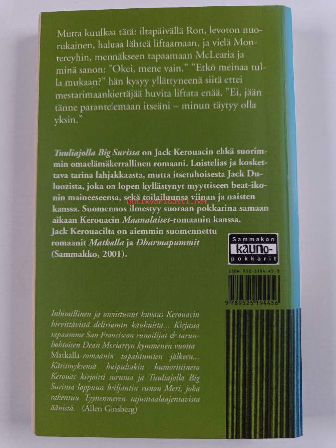 Muu(t) tekijä(t): Markus JääskeläinenSarja: Sammakon kaunopokkaritAlkuteos: Big SurAsiasanat: kirjailijat, psykologiset romaanit, beatnikit, boheemielämä, beatkirjallisuus