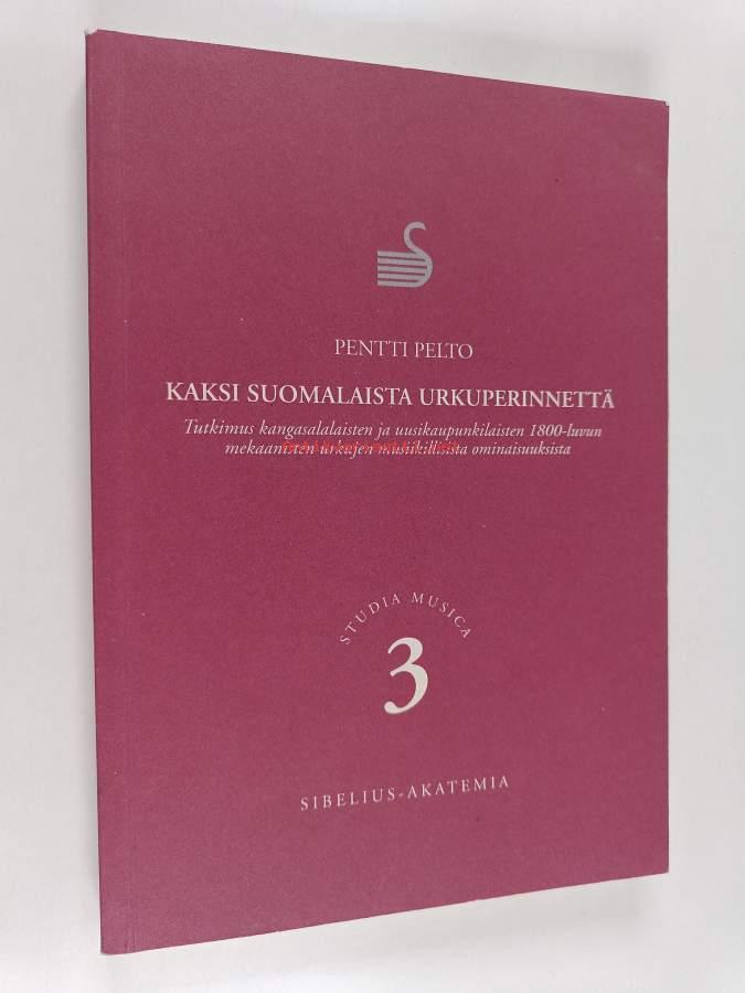 Koko nimi: Kaksi suomalaista urkuperinnettä : Tutkimus kangasalalaisten ja uusikaupunkilaisten 1800-luvun mekaanisten urkujen musiikillisista ominaisuuksista (signeerattu, tekijän omiste)Asiasanat: urut, soitinrakennus