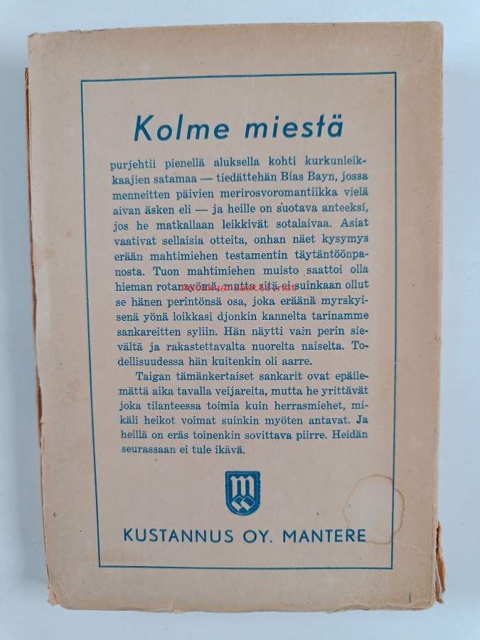 Tyydyttävä. Pientä kulumaa kansissa, pientä repeämää kansissa, selkämyksessä hieman vinoutta, selkämyksessä lukutaittumaa