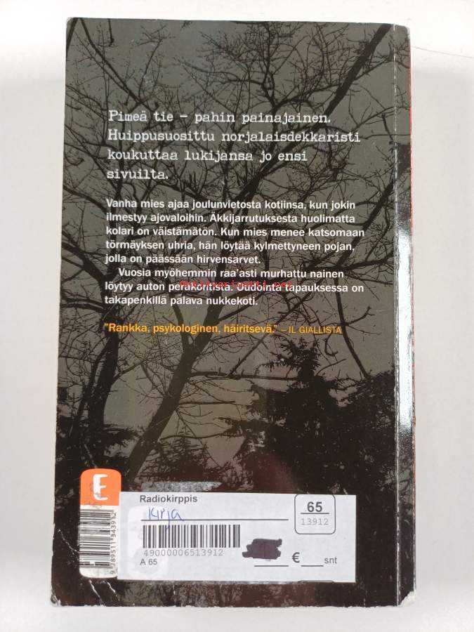Hyvä. Tarkempi kuntoluokka: K3- ; Hieman taitejälkeä kansissa, takana vanha hintalappu, selkämyksessä hieman vinoutta, selkämyksessä lukutaittumaa
