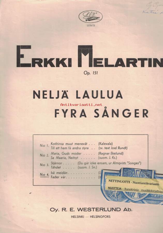 Suomi College / The Creed / Spring 1928 -Isä meidän rukous englanniksi
