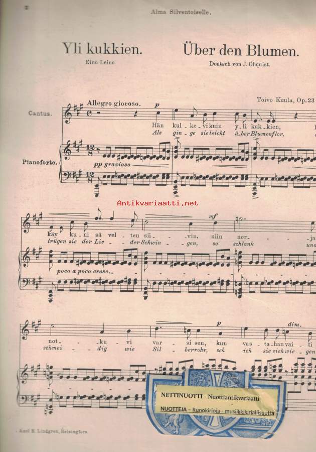 Yli kukkien = Über drn Blumen, Op. 23 No3