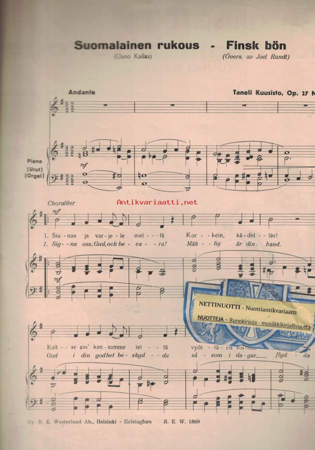 Suomalainen rukous, laulu pianon säestyksellä - Finsk bön