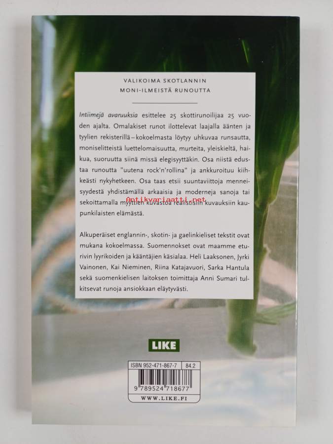 Muu(t) tekijä(t): Ken Cockburn, Robyn Marsack ym.Alkuteos: Intimate expanses : XXV Scottish poems 1978-2002Asiasanat: gaeli
