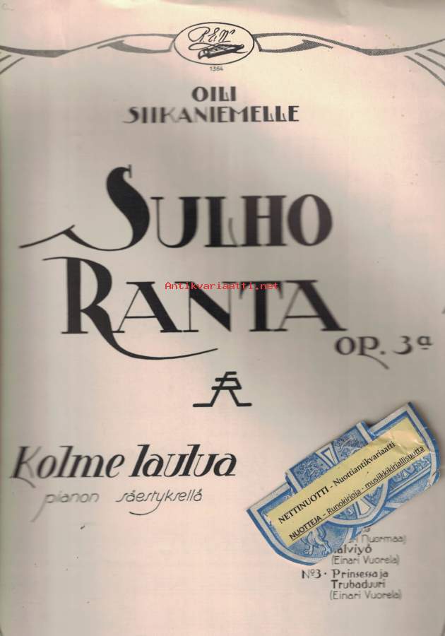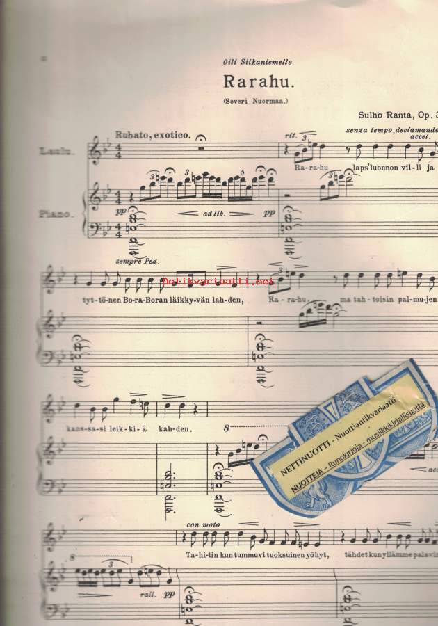 Kolme laulua pianon säestyksellä Op. 3a No1 RARAHU
