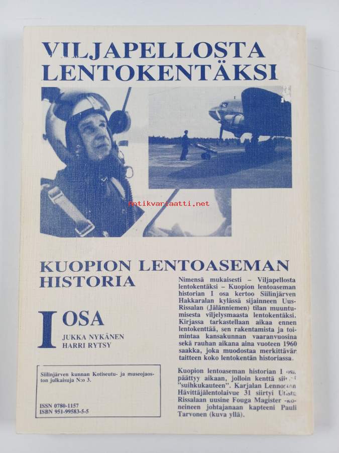 Muu(t) tekijä(t): Harri RytsySarja: Kuopion lentoaseman historia 1; 1939-1960; [Pöljän kotiseutumuseon julkaisusarja] [3; Siilinjärven kunnan kotiseutu- ja museojaoston julkaisuja n:o 3Asiasanat: historia, lentokentät, lentoasemat, flygplatser, flygfält