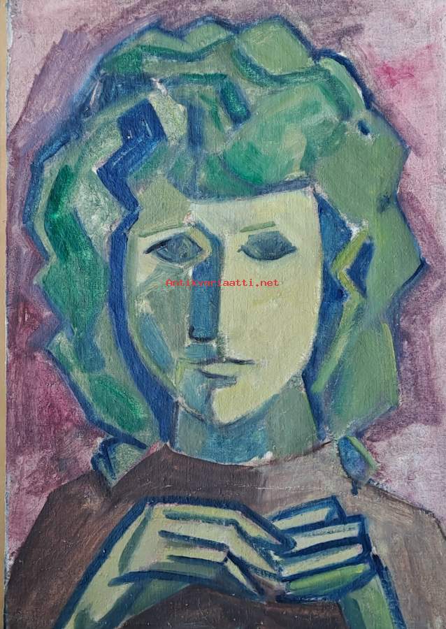 Leena Immonen. "Miesmalli" öljyvärimaalaus kankaalle, ei sign 70x50 cm kehystämätön / Leena-Maija Immonen 1927-2001 Haagan taiteilijaseura