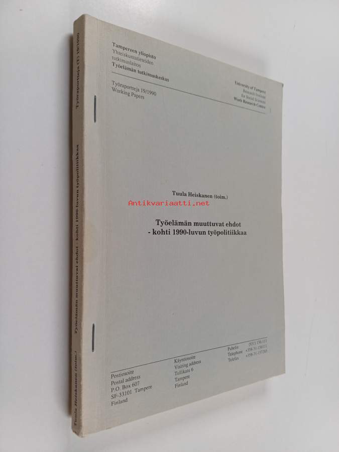 Muu(t) tekijä(t): Tuula HeiskanenSarja: Working papers / University of Tampere, Research Institute for Social Sciences, Work Research Centre 19/1990Asiasanat: työmarkkinat, työviihtyvyys, työelämän suhteet, työolot, työllisyys, työvoima, naistyöntekijät