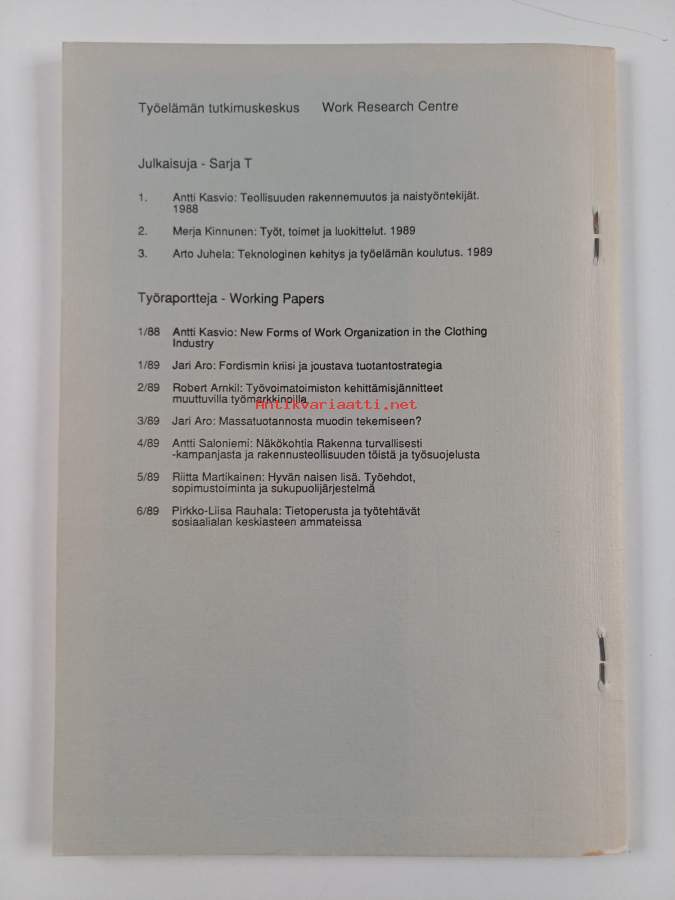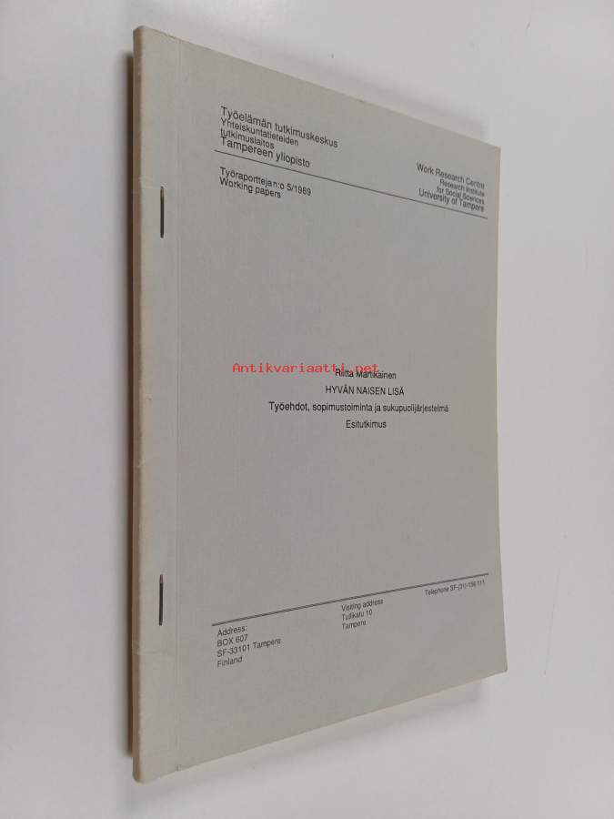 Sarja: Working papers / University of Tampere Research Institute for Social Sciences Work Research Centre 1989, n:o 5Asiasanat: naiset, tasa-arvo, työmarkkinat, työehtosopimukset