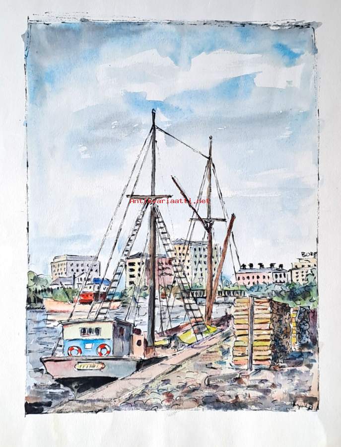 Aurajoki Turku akvarelli ei sign 44x31 cm kehystämätön