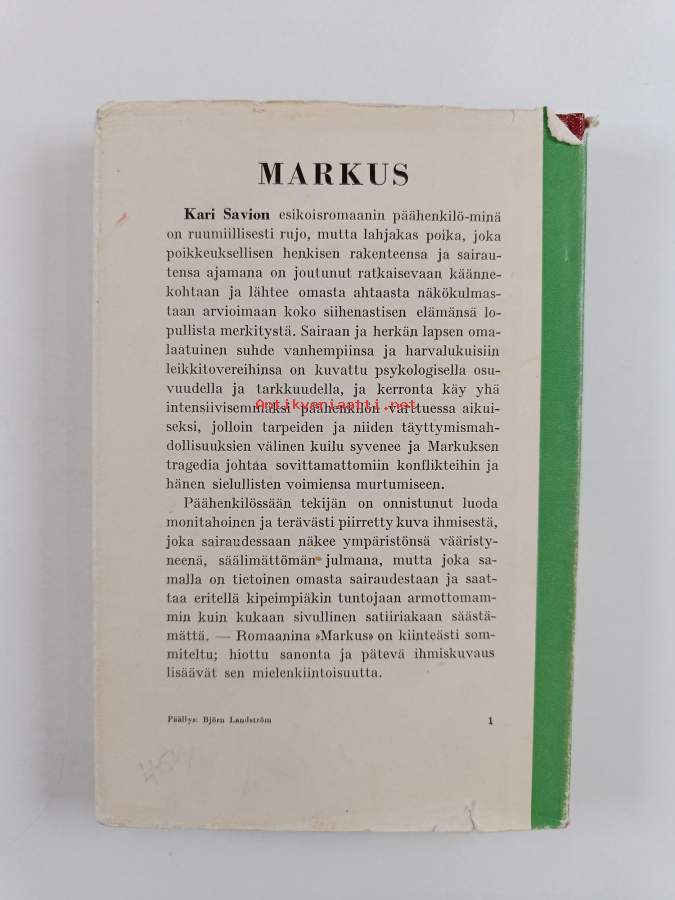 Hyvä. Tarkempi kuntoluokka: K3- ; Hieman kulumaa, selkämyksessä hieman vinoutta. Kansipaperin kunto: jonkin verran kulumaa/pienoisia repeämiä