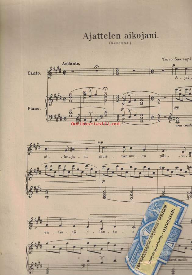 1. Ajattelen aikojani (Kanteletar)2. Helmi (Georg Brandes, suom. Aarni Kouta)-Suuri Helposti kuori (taitettuna)
