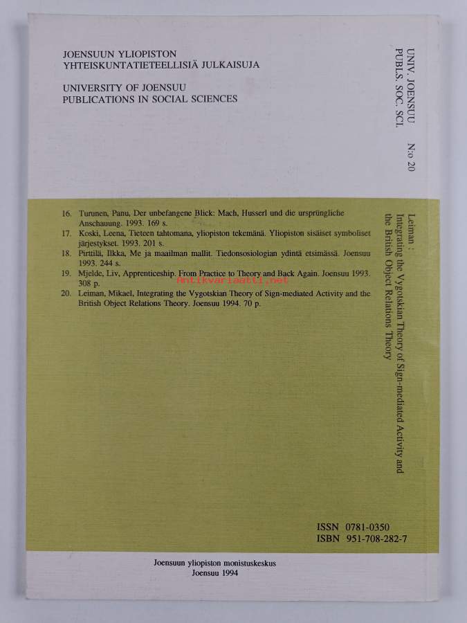 Sarja: Joensuun yliopiston yhteiskuntatieteellisiä julkaisuja n:o 20