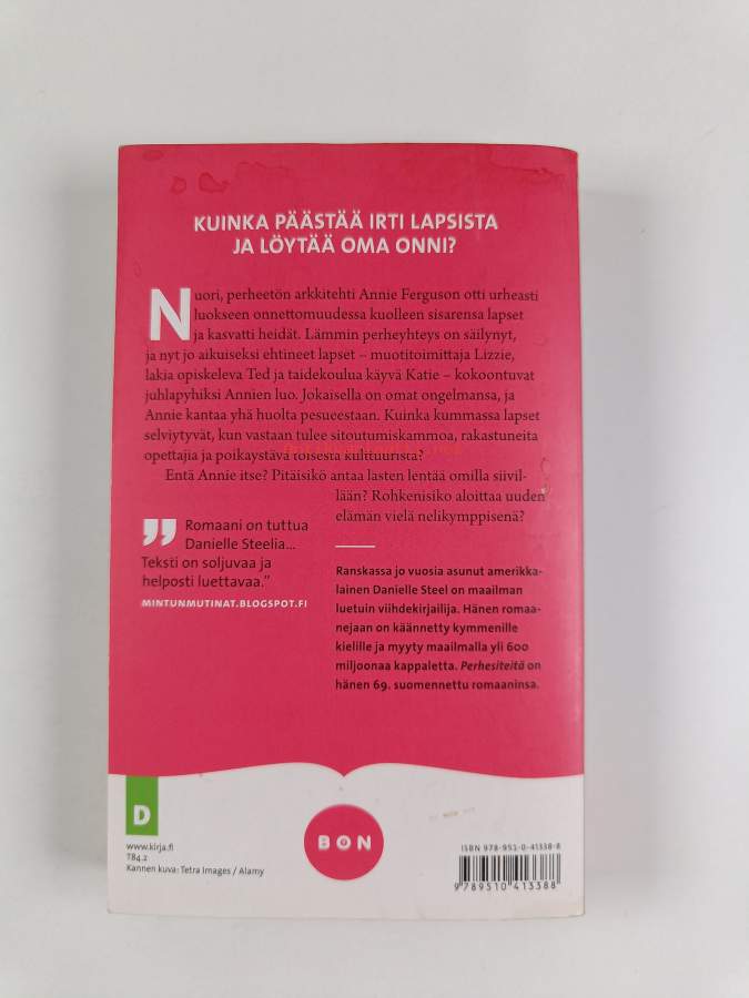 Muu(t) tekijä(t): Pirjo RutiSarja: BonAlkuteos: Family tiesAsiasanat: arkkitehdit, vanhemmuus, aikuistuminen, elämänmuutokset, orvot, kasvattilapset, sijaisvanhemmat, sisarukset, menetys