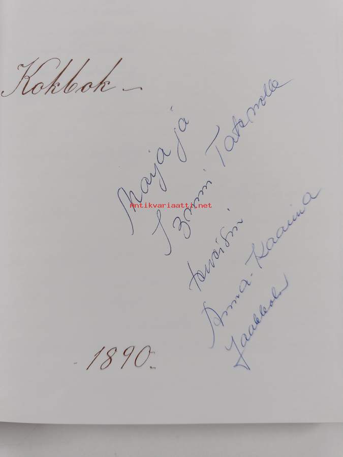 Annas kokbok 1890 (signeerattu, tekijän omiste)
