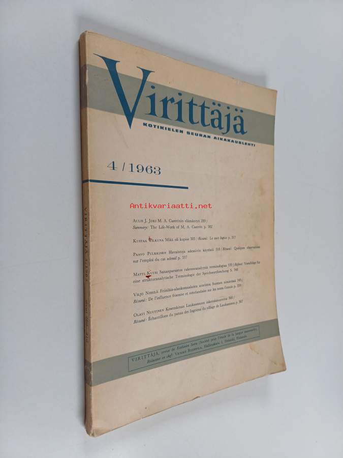 Virittäjä 4/1963 : Kotikielen seuran aikakauslehti