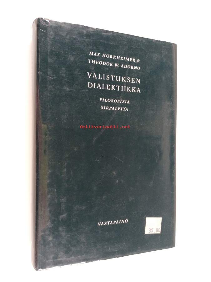 Muu(t) tekijä(t): Theodor W. Adorno, Veikko PietiläAlkuteos: Dialektik der AufklärungAsiasanat: juutalaisvainot, Jumala, valistus, yhteiskuntafilosofia, dialektiikka, kriittinen teoria, poliittinen filosofia, kulttuuriteollisuus, Frankfurtin koulukunta