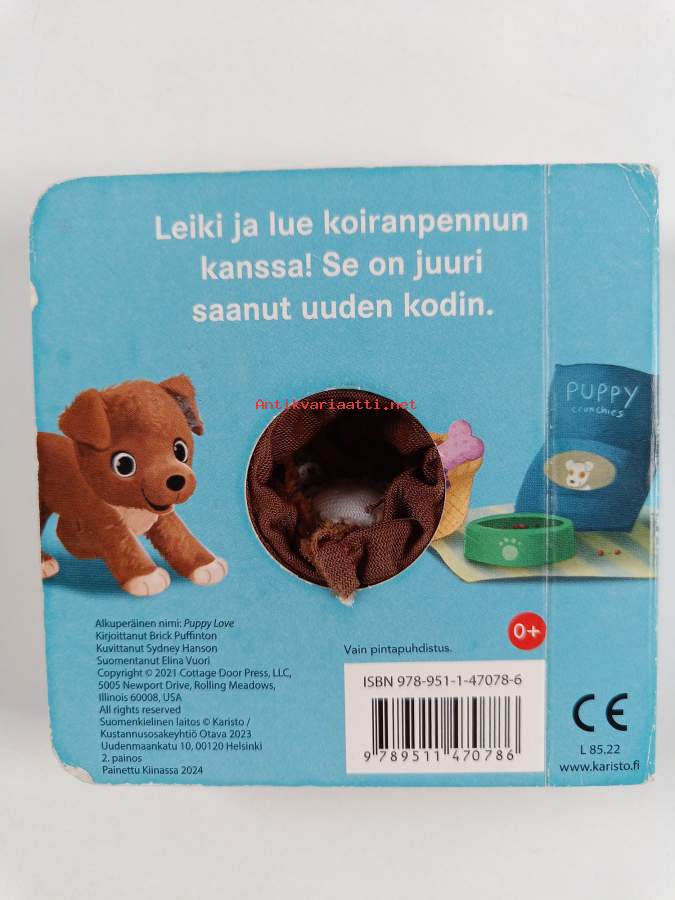 Muu(t) tekijä(t): Elina (suom.) Vuori, Sydney (kuvitus) HansonAlkuteos: Puppy LoveAsiasanat: koirat, lelukirjat, sorminuket