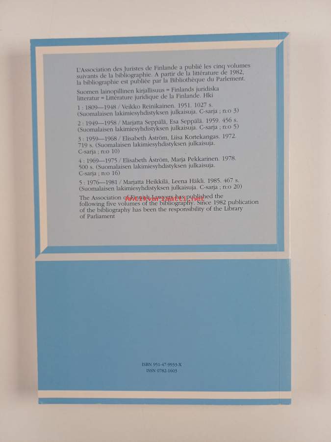 Bibliographia iuridica Fennica : littérature en langues étrangères : literature in foreign languages : 1982-1992