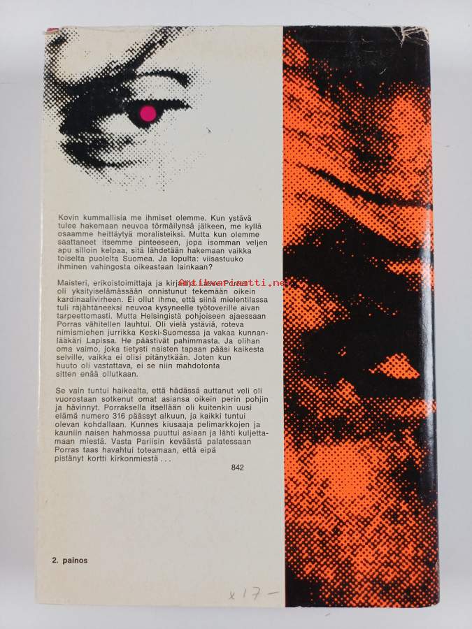 Hyvä. Hieman kulumaa reunoilla ja kulmissa, selkämyksessä vinoutta. Kansipaperin kunto: joitain repeämiä/kulumaa