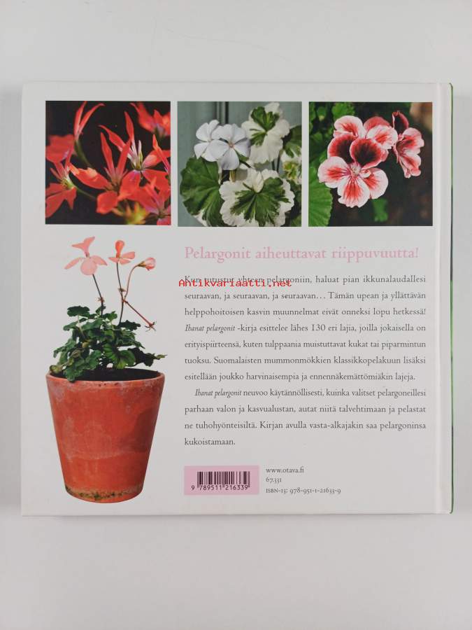 Muu(t) tekijä(t): Aretta Tiilimäki, Eivor RasehornMerkinnät: omistajamerkintä (tarra)Alkuteos: 100 pelargoner och hur du sköter demAsiasanat: huonekasvit, koristekasvit, ruukkukasvit, pelargonit