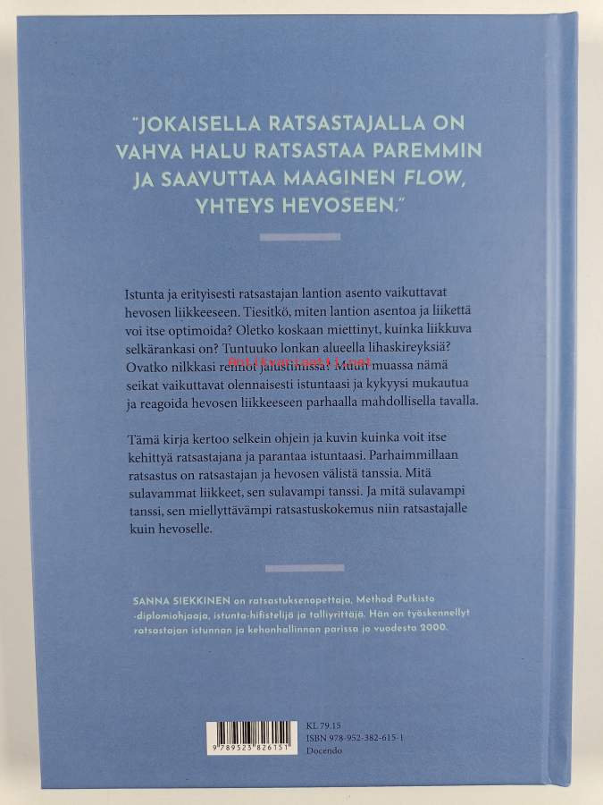 Asiasanat: ratsastus, ratsastajat, liike, selkäranka, kehonhallinta, lantio, istuminen, harjoitteet, asennot (ruumiinasennot)