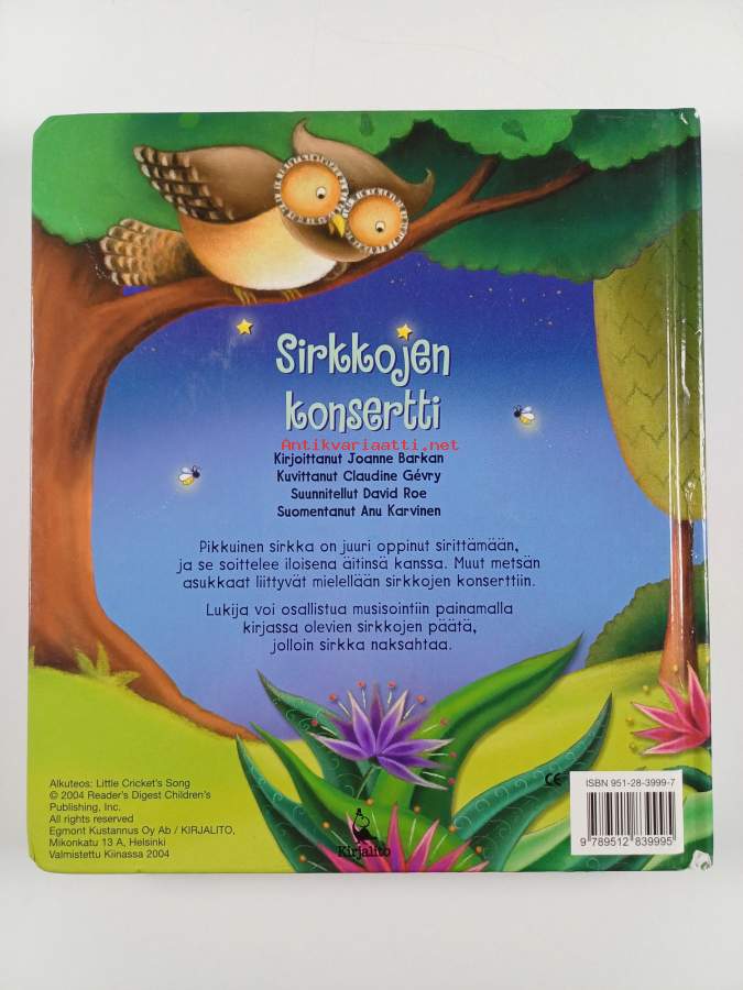 Muu(t) tekijä(t): Anu Karvinen, Claudine GévryAlkuteos: Little cricket's songAsiasanat: eläimet, hyönteiset, heinäsirkat, äänet
