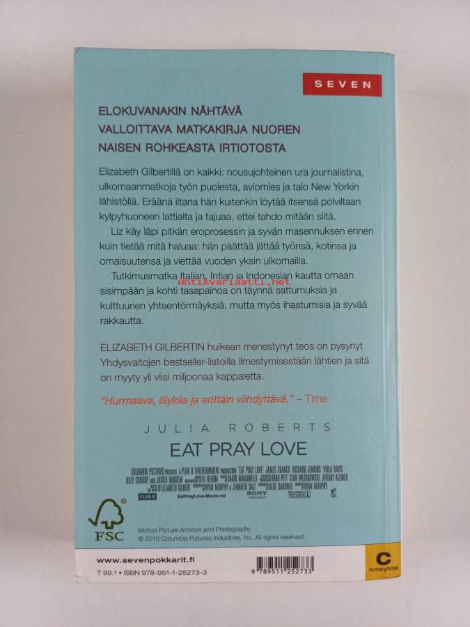 Muu(t) tekijä(t): Taina AarneSarja: SevenAlkuteos: Eat, pray, loveAsiasanat: muistelmat, matkakertomukset, kirjailijat, matkat