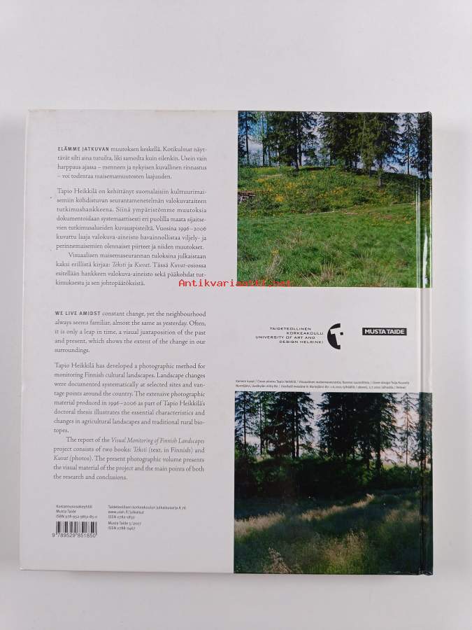 Koko nimi: Visuaalinen maisemaseuranta : kulttuurimaiseman muutosten valokuvadokumentointi : kuvat = Visual monitoring of Finnish landscapes : photographic documentation of changes in cultural landscapesMuu(t) tekijä(t): Tomi SnellmanSarja: Taideteollisen korkeakoulun julkaisusarja A 76Asiasanat: muutos, maisema, maisemavalokuvaus, dokumenttivalokuvaus