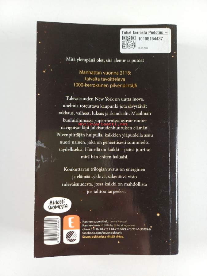 Muu(t) tekijä(t): Annika EräpuroSarja: Tuhat kerrosta [1]; SevenAlkuteos: The thousandth floorAsiasanat: parisuhde, ystävyys, tulevaisuus, päihteet, seurapiirit, juhlinta, sekoilu