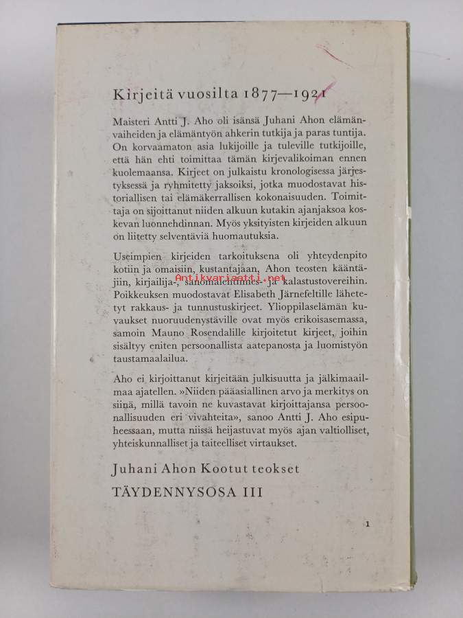 Muu(t) tekijä(t): Antti Juhani AhoSarja: Kootut teokset täydennysosa 3Asiasanat: kirjeet