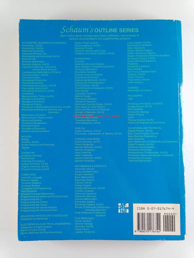 Merkinnät: omistajamerkintäSarja: Schaum's Outline SeriesAsiasanat: talousmatematiikka, matematiikka, matemaattiset menetelmät