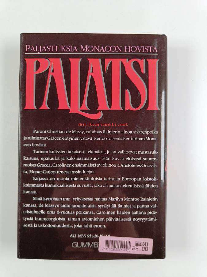 Muu(t) tekijä(t): Kaarina Fagerholm, Charles HighamAlkuteos: Palace : my life in the royal family of MonacoAsiasanat: muistelmat, aateli, hallitsijat