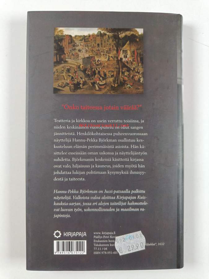 Hyvä. Tarkempi kuntoluokka: K3+ ; Hieman kulumaa kansissa, takana vanha hintalappu. Kansipaperin kunto: pientä kulumaa