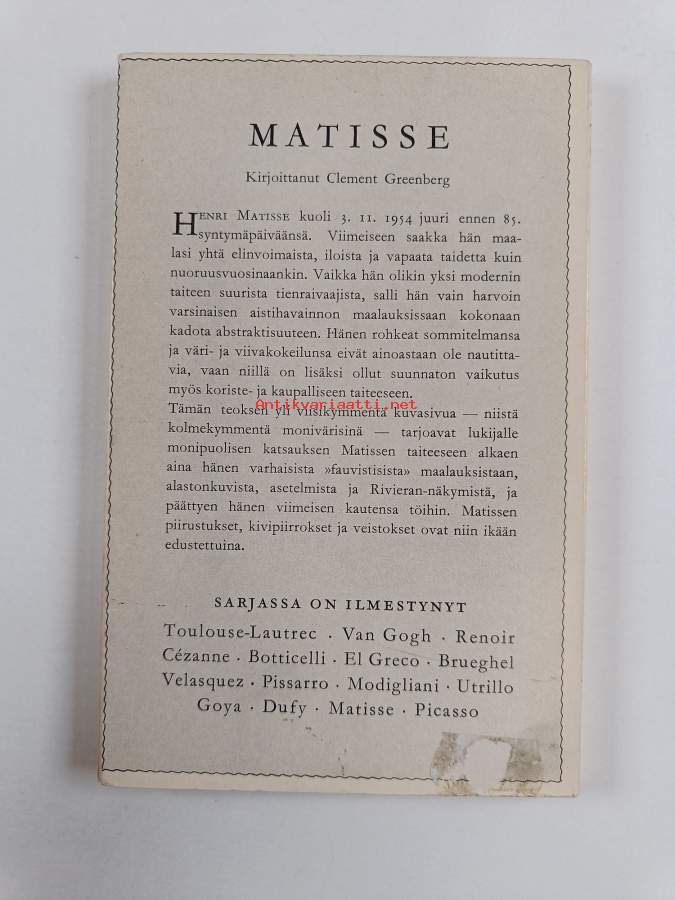 Muu(t) tekijä(t): Henri MatisseSarja: Pieni taidekirjasto 14Asiasanat: maalaustaide, taidemaalarit