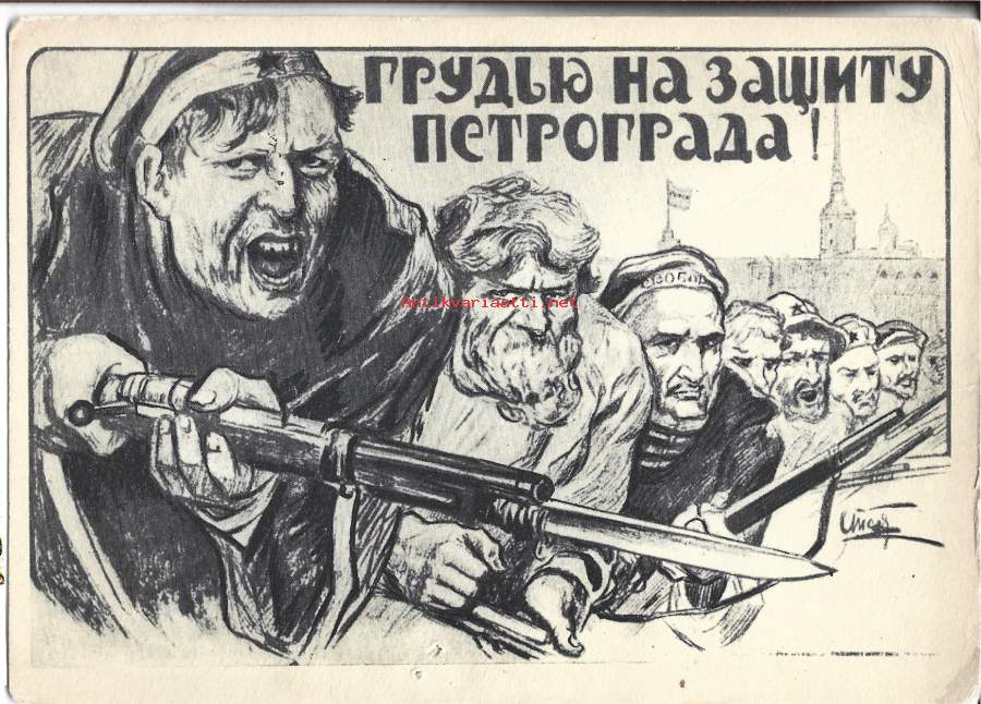 Puolustakaa Petrogradia 1918 Venäjän vallankumous sotilaspostikortti postikortti kulkematon