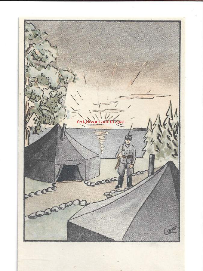 Sotilasleirin vartiomies - sotilaspostikortti postikortti kulkematon