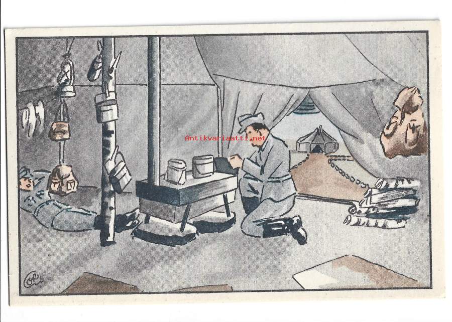Telttaelämää - sotilaspostikortti postikortti kulkematon