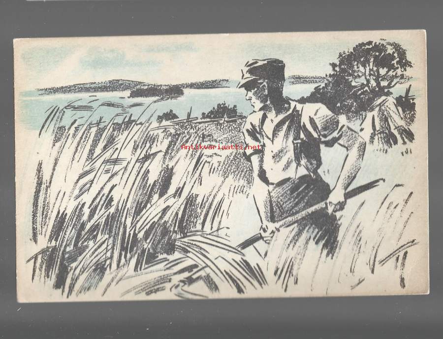 Elonkorjuuta kotipellolla - sotilaspostikortti postikortti kulkematon
