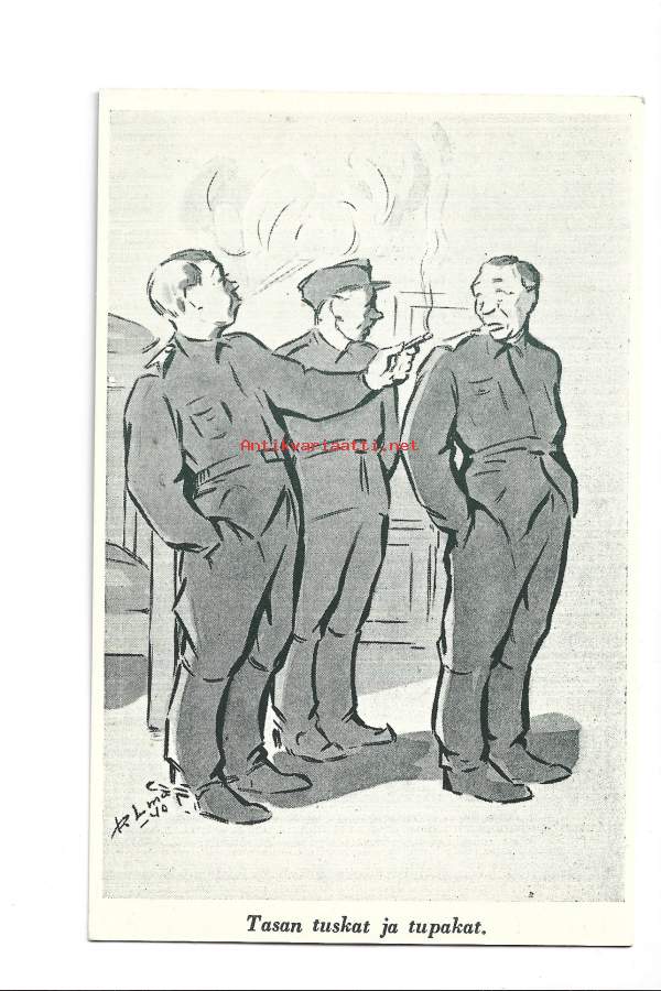 Tasan tuskat ja tupakat sign R Lahdelma - sotilaspostikortti postikortti kulkematon