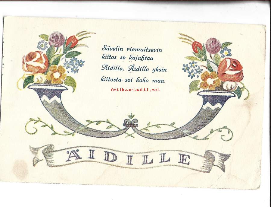 Äidille - sotilaspostikortti postikortti kulkenut Kenttäpostia 1943