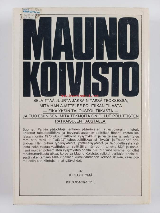 MAUNO KOIVISTO, VÄÄRÄÄ POLITIIKKAA , VAKITA.N tarjous helposti s-m koko paketti 19x36 x60 cm paino 35kg 5e