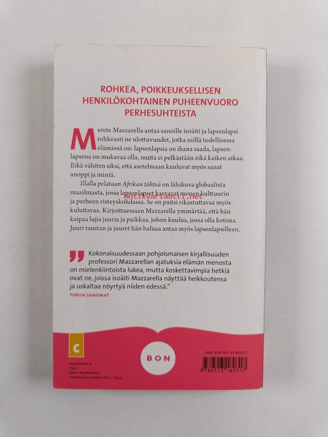 Muu(t) tekijä(t): Raija ViitanenSarja: BonAlkuteos: När vi spelade Afrikas stjärnaAsiasanat: vanhempi-lapsisuhde, lapsenlapset, isovanhemmat