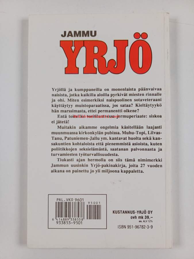 Kolme seuranäytelmää / kirjoittanut Yrjö Veijola.Weijola 98 sivuaSisältö: Sisältää: Palmkvistin kylpymatka. Ihmeellinen asia. Talkoopolska