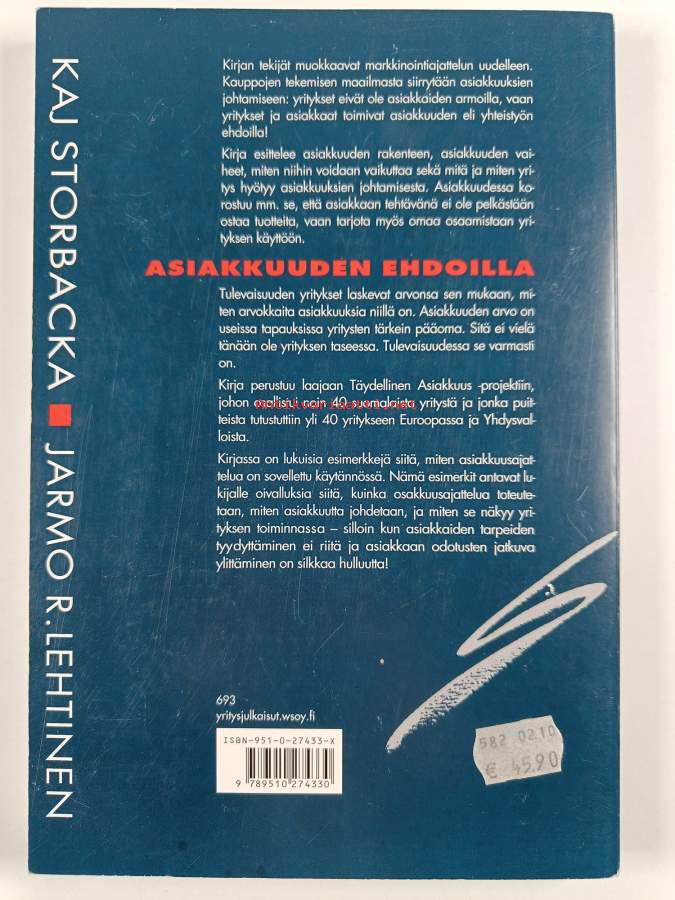 Hyvä. Tarkempi kuntoluokka: K3+ ; Hieman käytön jälkeä kansissa, takana vanha hintalappu