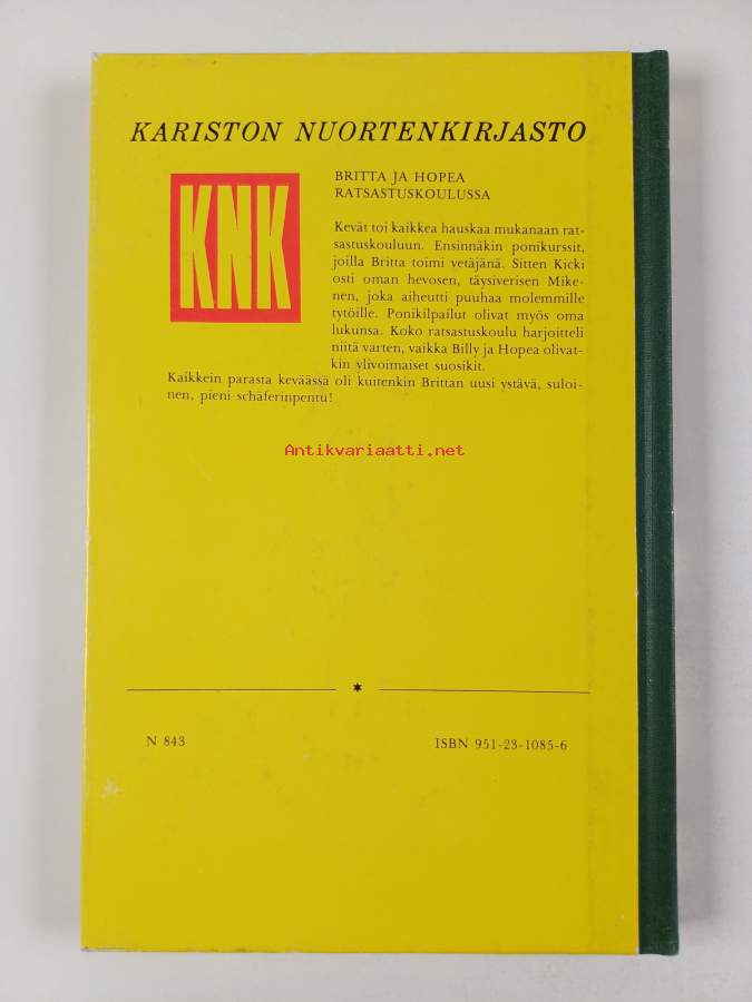 Muu(t) tekijä(t): Esko (suom.) LouhialaMerkinnät: ylivedetty omistajamerkintäSarja: Kariston nuortenkirjastoAlkuteos: Britta och Silver på ridskolan
