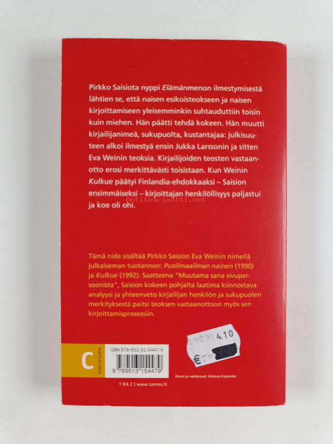 Erinomainen. Tarkempi kuntoluokka: K4- ; Pienoista kulumaa kansissa, takana vanha hintalappu
