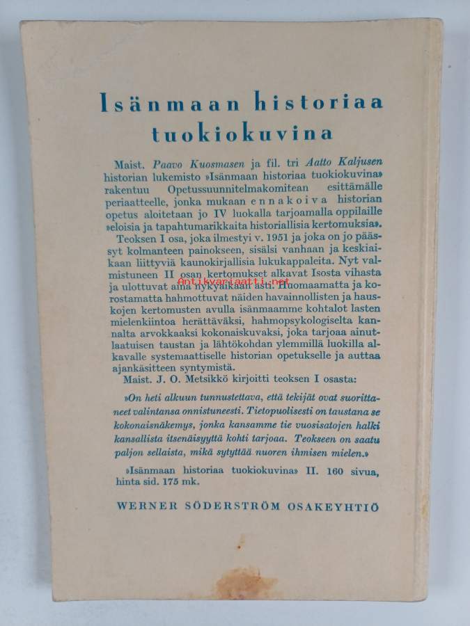 Hyvä. Tarkempi kuntoluokka: K3+ ; Hieman kulumaa kansissa, hieman tahraisuutta takakannessa